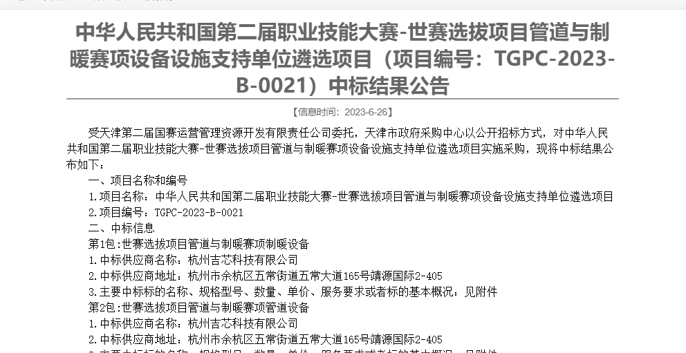 熱烈祝賀我司“職教事業(yè)部”,順利通過“中華人民共和國(guó)第二屆職業(yè)技能大賽-世賽選拔項(xiàng)目管道與制暖賽項(xiàng)設(shè)備設(shè)施支持單位”遴選,屆時(shí),我司將全力做好賽事設(shè)備、技術(shù)保障及支持工作,預(yù)祝中華人民共和國(guó)第二屆職業(yè)技能大賽舉辦取得圓滿成功。