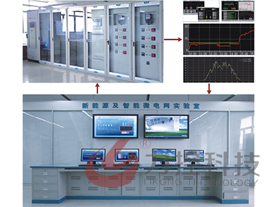 本系統(tǒng)由五個(gè)典型部分組成,分別儲(chǔ)能系統(tǒng)、供配電系統(tǒng)、監(jiān)控調(diào)度系統(tǒng)、環(huán)境監(jiān)控云服務(wù)系統(tǒng)、負(fù)載系統(tǒng)、及發(fā)電系統(tǒng),其中發(fā)電部分有風(fēng)力發(fā)電和太陽(yáng)能發(fā)電及氫能源組成。微網(wǎng)系統(tǒng)具備:發(fā)電部分(分布式電源)、RLC可編程負(fù)載、智能開關(guān)柜單元、后臺(tái)監(jiān)控調(diào)度系統(tǒng)。